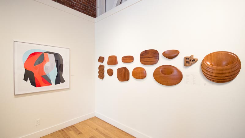 The exhibit features works by Tim Celeski (Indianola, WA), David Owen Hastings (Sequim, WA), Leslie Newman (Indianola, WA), and Brian O’Neill (Bellingham, WA) and focuses on abstract art in mediums including prints, quilts, ceramic vessels, digital painting, and abstract wood sculpture.