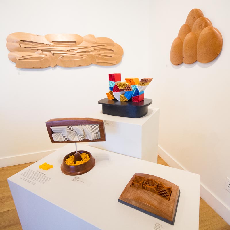 The show runs through August 7, 2022. There’s an artist talk and walk through Saturday, July 9th. The show featuring the works of four artists, including yours truly, who started out as graphic designers. The four of us have been friends for more than 35 years and now focus on fine art using different mediums. My focus, of course, is on wood sculpture. Most of the work I’ve prepared for the show is created using digital woodworking tools like CNCs.
